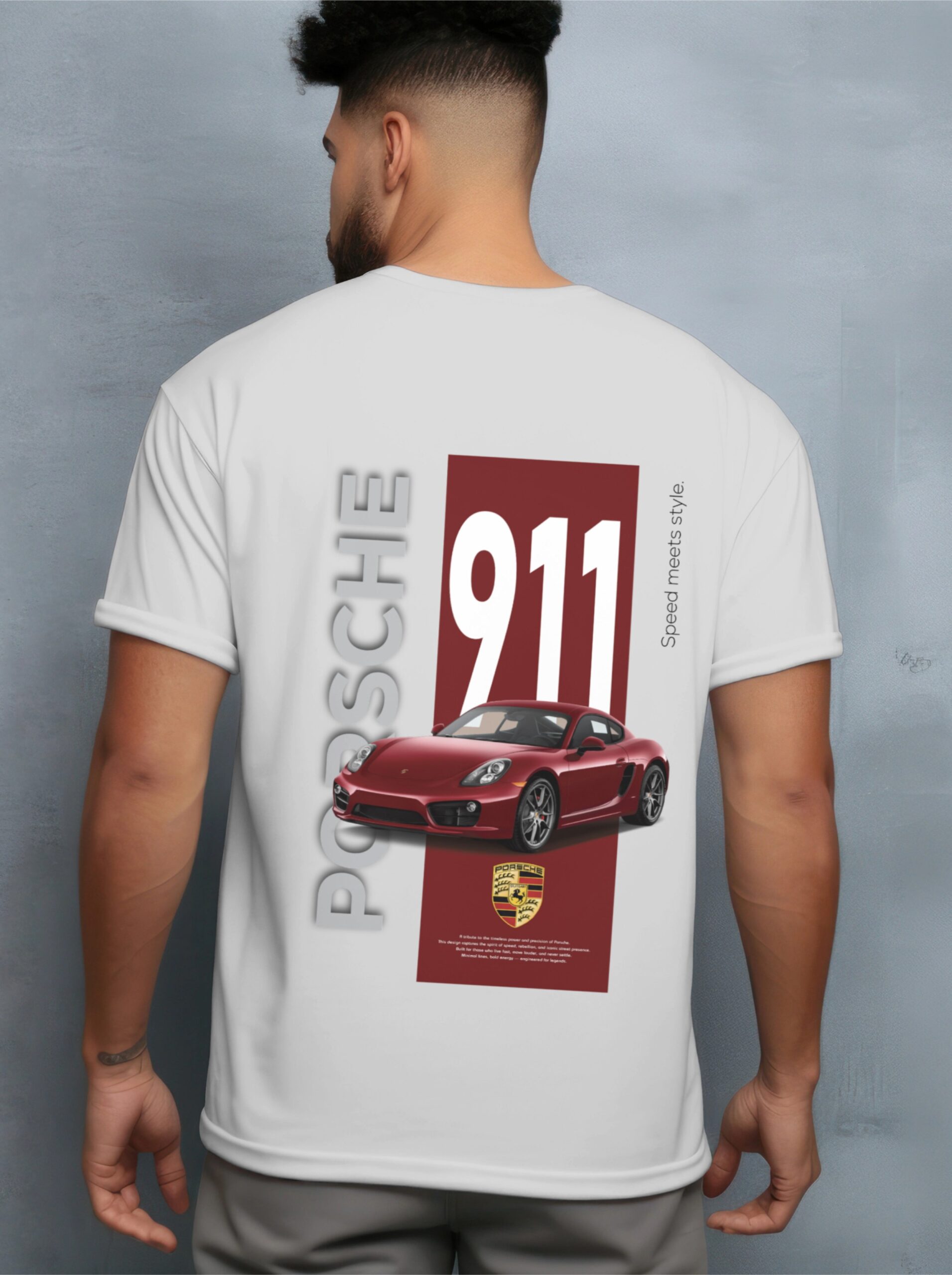 Designed for those who appreciate precision and performance, the Porsche 911 Minimal Graphic T-Shirt delivers understated style with a powerful back detail. The front features a small, embroidered-style Porsche crest, while the back showcases a vivid red Porsche 911 graphic with the words “Speed meets style”. Crafted from high-quality cotton, this tee offers a comfortable fit and a premium feel, making it an easy choice for both casual wear and automotive events.